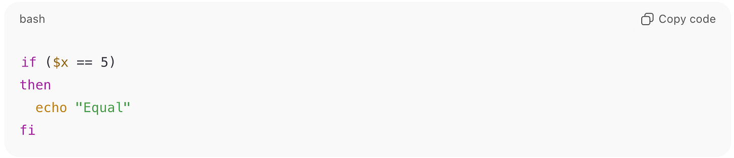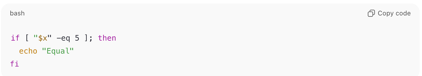 ➡️ Wrong Language Mix: $x with == belongs to PowerShell, not Bash.